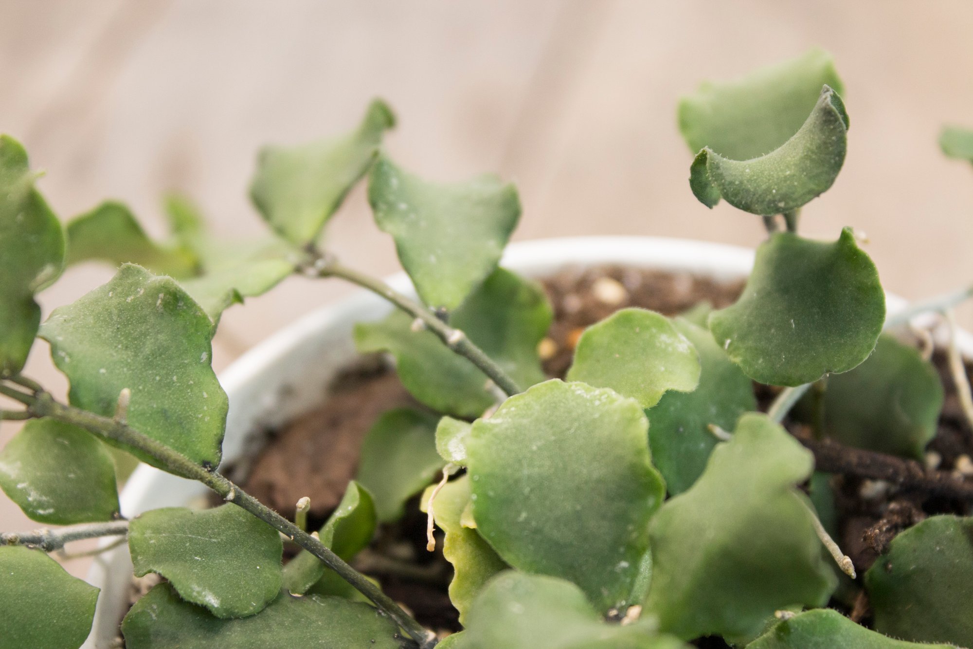 Caring for Hoya kanyakumariana is wonderfully straightforward. It thrives in bright, indirect light, though a few hours of soft morning sun can encourage both growth and flowering. Its woody stems store water well, so it prefers to dry out between waterings, making it forgiving for those who don’t maintain a strict schedule. This plant’s combination of unusual leaf texture, architectural stems, and fragrant blooms offers a rare mix of charm and resilience, making it an eye-catching and low-maintenance treasure for any plant lover.